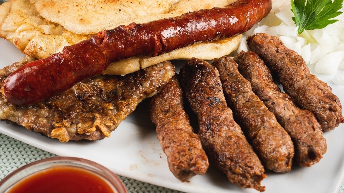 5 čevapčičev, pol klobase sudžukice z lepinjo, čebula, pijača po izbiri