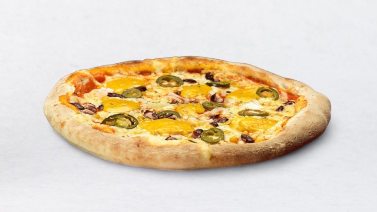 Pelati, sir, slanina, koruza, čebula, nacho sir, jalapenosi, fižol, origano V ceno jedi je všteto doplačilo 0.50 eur za biorazgradljivo embalažo
