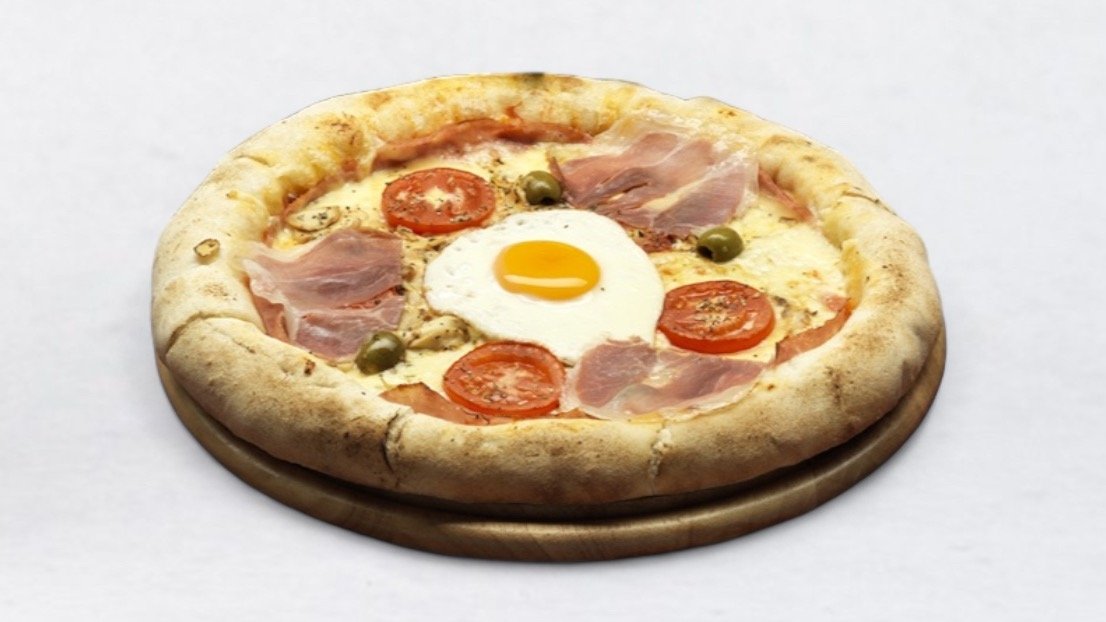 Pelati, sir, šunka, gobe, paradižnik, olive, pršut, sir v robu pice, bazilika, origano V ceno jedi je všteto doplačilo 0.50 eur za biorazgradljivo embalažo