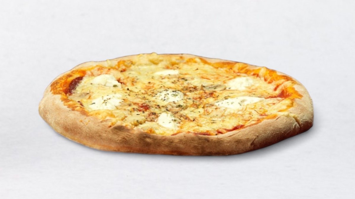 Pelati, sir, mozzarella, gorgonzola, parmezan, bazilika, origano V ceno jedi je všteto doplačilo 0.50 eur za biorazgradljivo embalažo