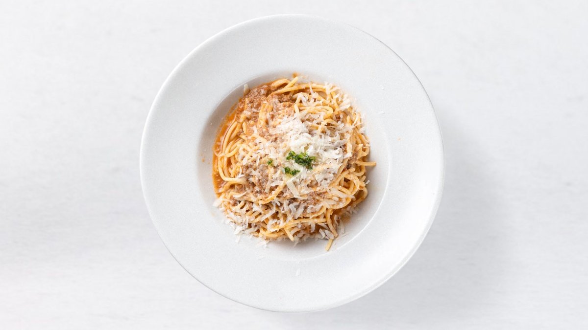 Špageti v omaki z mesom in paradižnikom V ceno jedi je všteto doplačilo 0.50 eur za biorazgradljivo embalažo