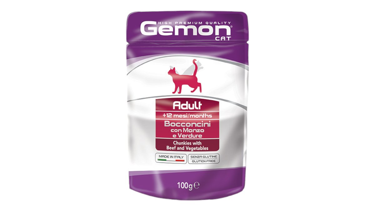 Mokra hrana za mačke Cat Pouch Adult z govedino, Gemon (100 g)
