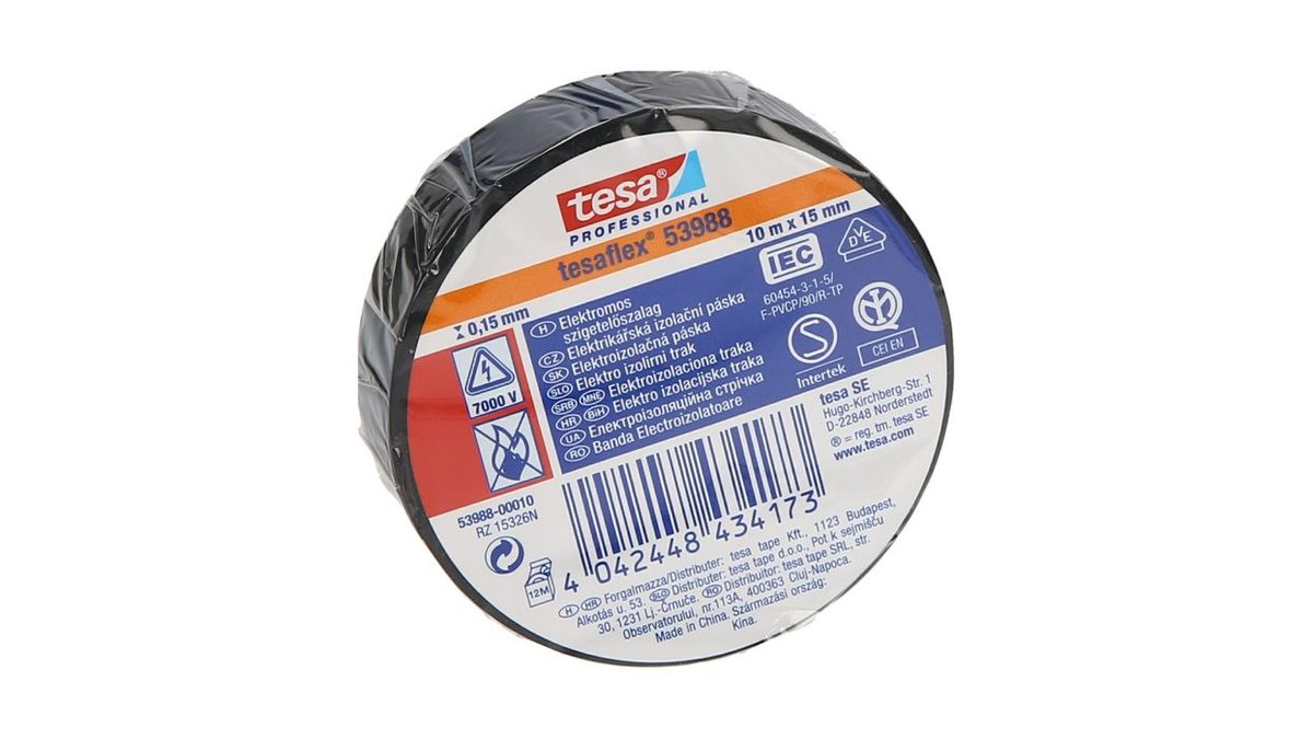 Elektro izolirni trak črn, Tesa (10 m x 15 mm)