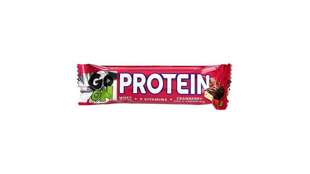 Beljakovinska ploščica Brusnica z goji jagodami Go on, Sante (50 g)