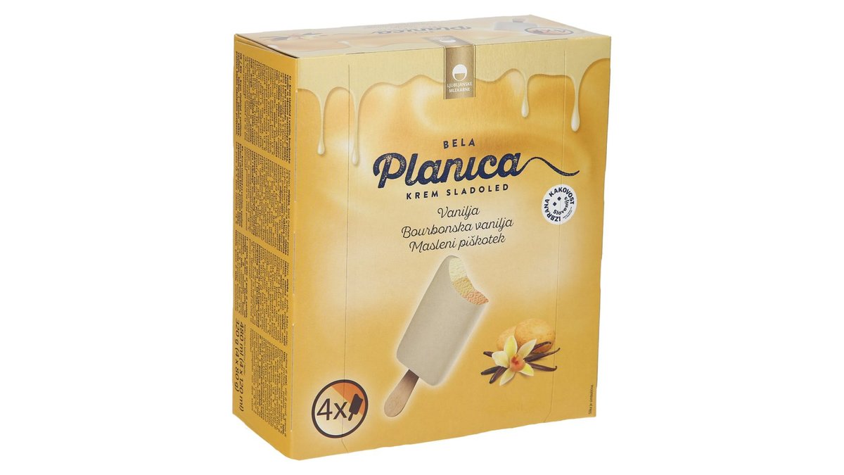 Sladoled Planica bela na palčki, Ljubljanske mlekarne (4 kosi po 120 ml)