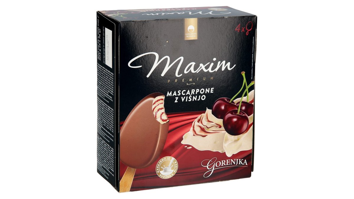 Sladoled na palčki mascarpone z višnjo Maxim Premium, Ljubljanske mlekarne (4 kosi po 100 ml)