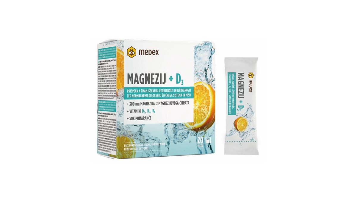 Instant napitek Medex Magnezij + D3, 20 vrečk po 6,8 g v prahu