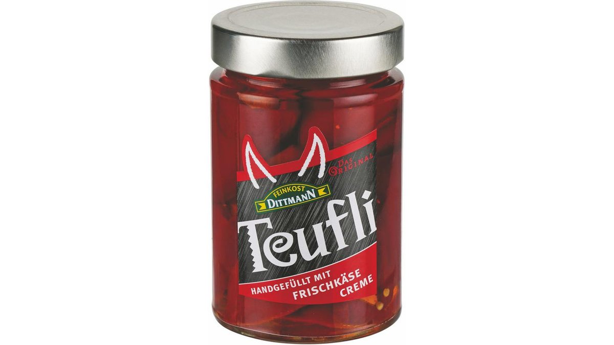 Feferoni Dittmann, rdeči pekoči, polnjeni s pripravkom iz svežega sira, 290 g