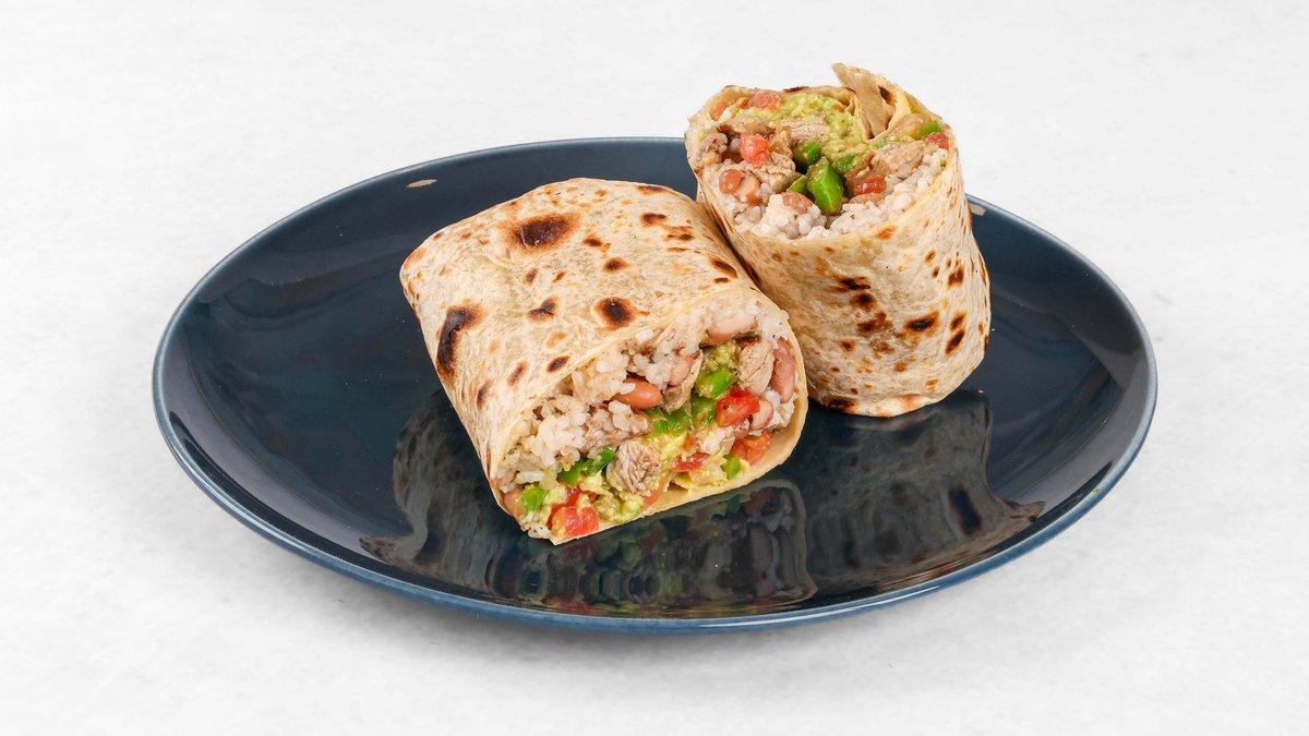 Tortilja, riž, natrgana svinjina (carnitas), žar zelenjava (fajitas), svež paradižnik z limeto (pico de gallo), rdeča salsa 🔥, kremna omaka z limeto, solata prikaži več