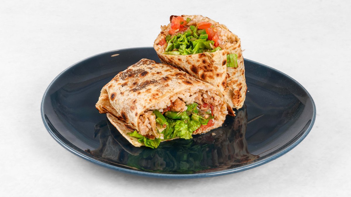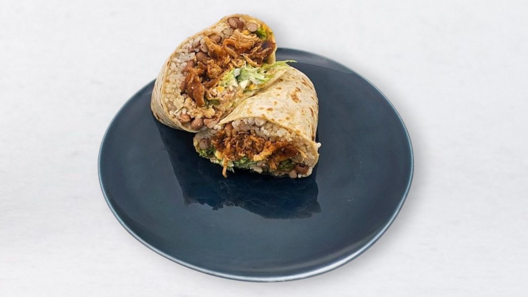 Tortilla, riž, pinto fižol, piščančje stegno na žaru, natrgana svinjina (carnitas), žar zelenjava (fajitas), svež paradižnik z limeto (pico de gallo), rdeča salsa 🔥, nariban sir, kremna omaka z limeto, solata