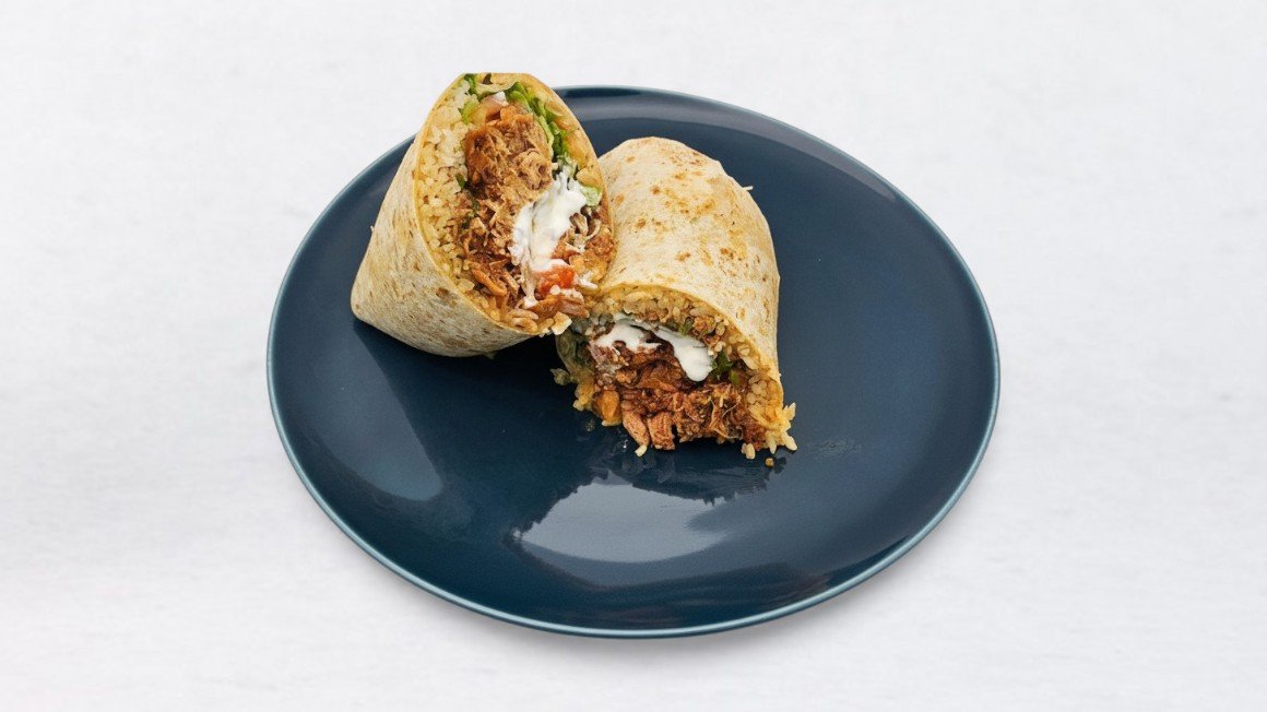 Tortila, riž, pinto fižol, 2x piščančje stegno na žaru, svež paradižnik z limeto (pico de gallo), rdeča salsa 🔥, kremna omaka z limeto, nariban sir in solata