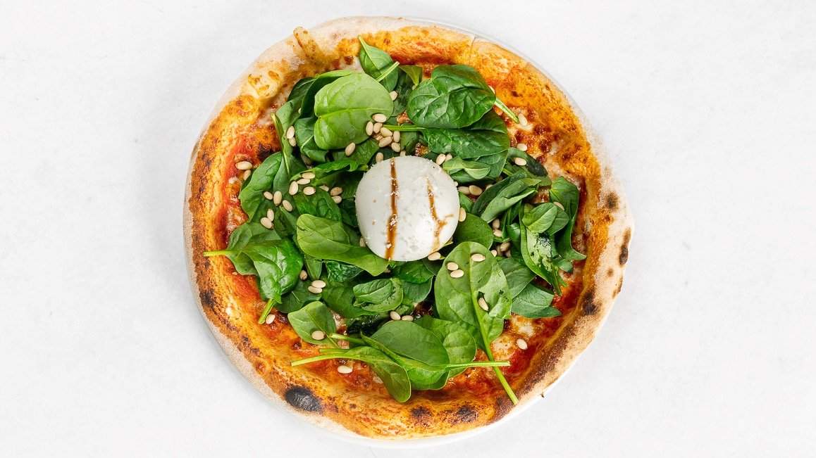 Pizza Burata z mlado špinačo