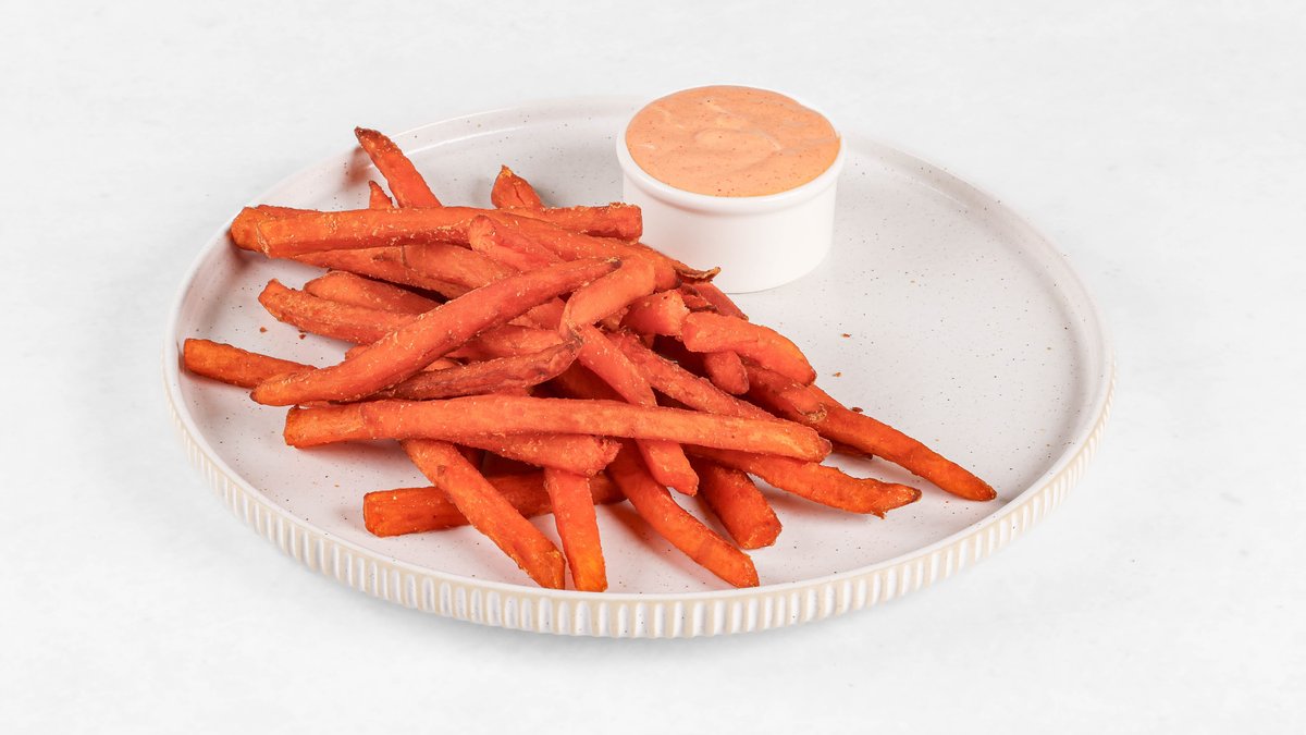 Ledenka, korenje, koruza, honey mustard omaka, osnova po izbiri, krompirček