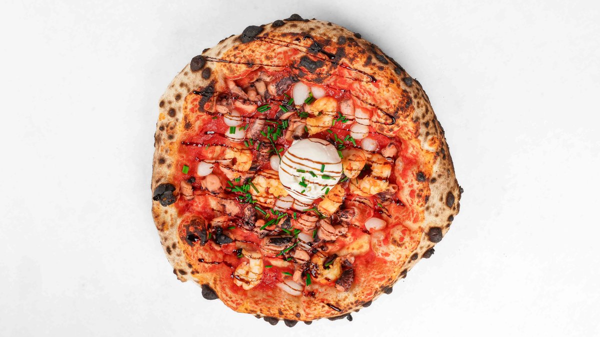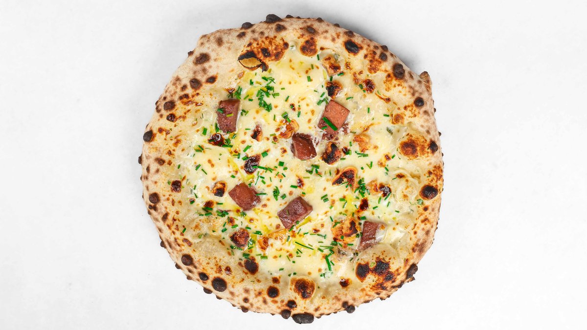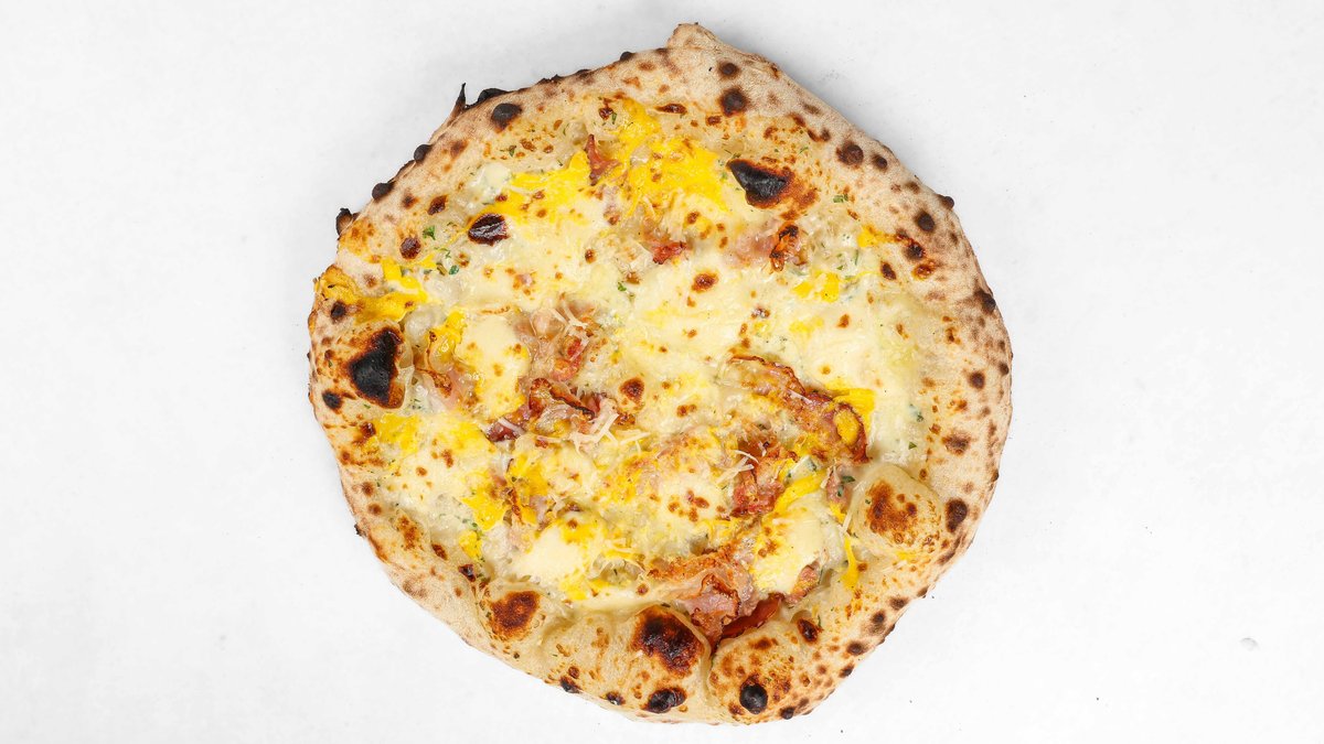 Taleggio krema, mozzarella Fior di Latte, guanciale, jajčni rumenjak, ovčji sir, črni poper V ceno jedi je všteto doplačilo 0.50 eur za biorazgradljivo embalažo