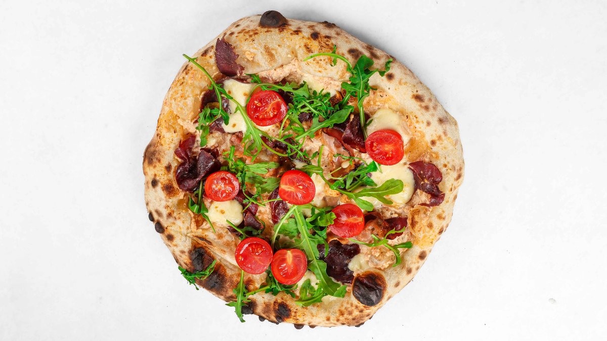 Pelati Danicoop Gustarosso, mozzarella Fior di Latte, goveja bržola, češnjev paradižnik, Grana Padano ZOP V ceno jedi je všteto doplačilo 0.50 eur za biorazgradljivo embalažo