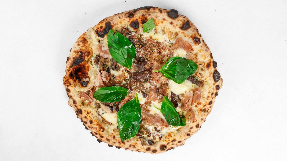 Taleggio krema, porchetta, mešane gobe s peteršiljem in česnom, ajdova kaša, mozzarella di Bufala, bazilika, rožmarinovo olje V ceno jedi je všteto doplačilo 0.50 eur za biorazgradljivo embalažo