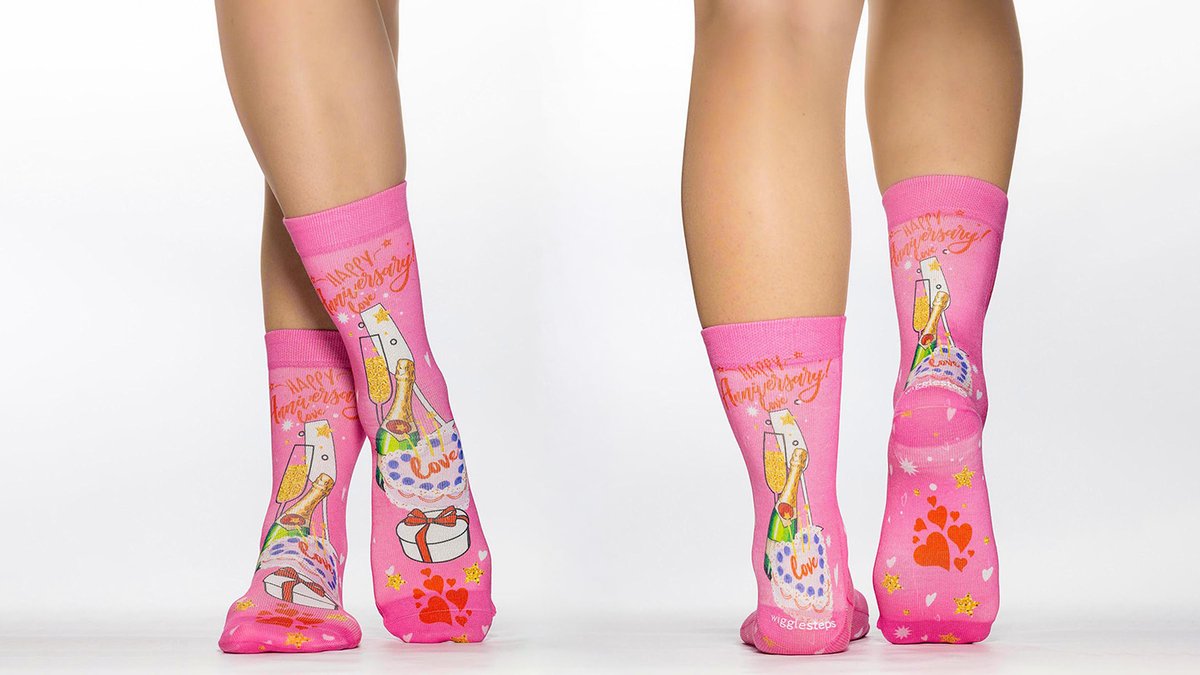 Wigglesteps nogavičke so popolna izbira za vse, ki želite dodati kanček barvitosti svojemu stilu. Izredno udobne in navidezno brezšivne nogavice vas bodo na notranji strani razvajale z organskim bombažem, na zunanji pa s pozitivnimi in barvitimi motivi ter patentirano Dry Touch tehnologijo, ki omogoča hitro sušenje tkanine.