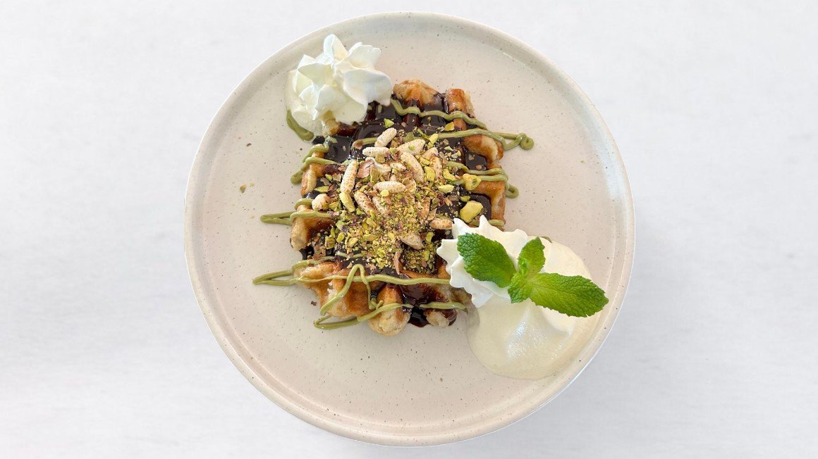 Belgijski vafelj, pistacija, Nutella, smetana