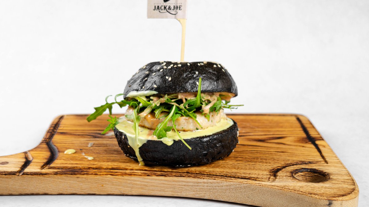 Črn hlebček, polpet iz velikih rakovih repkov, domača wasabi majoneza, hišna omaka, rukola V ceno jedi je všteto doplačilo 0.70 eur za biorazgradljivo embalažo