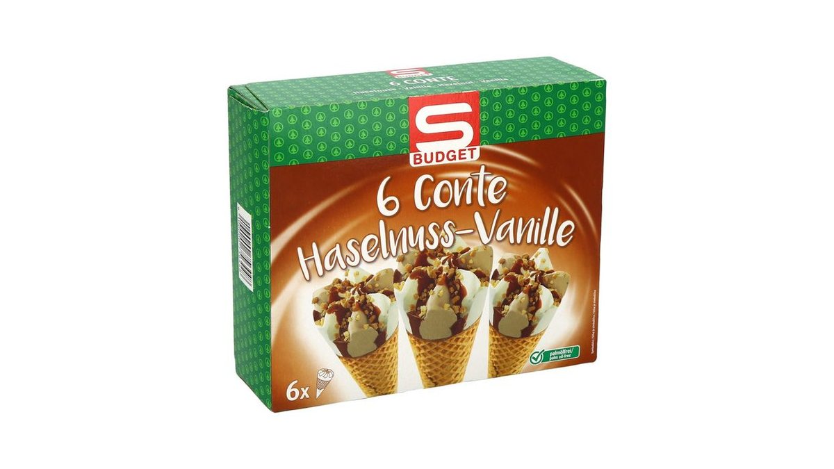 Sladoled korneti Vanilija in lešnik Conte, S-Budget (6 kosov po 120 ml)