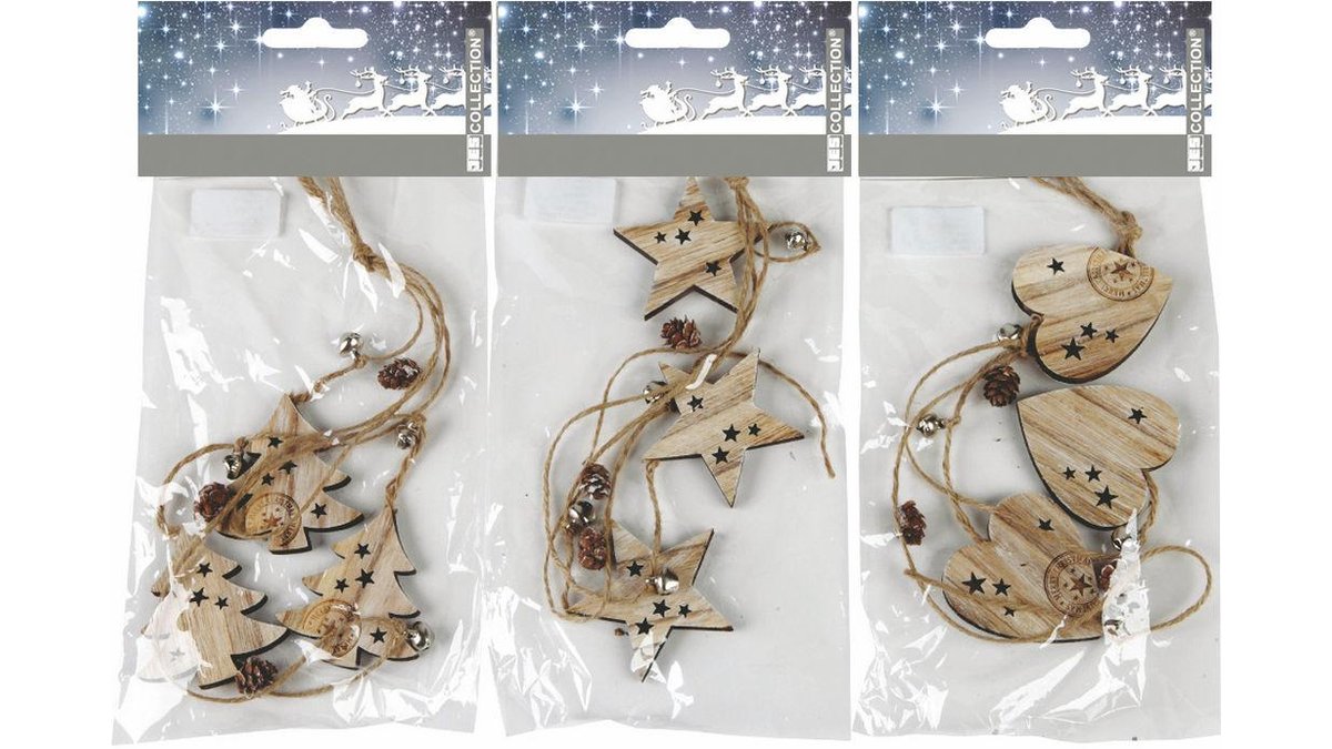 Obesek božični, z zvončki, les, več vrst, 7,5 cm