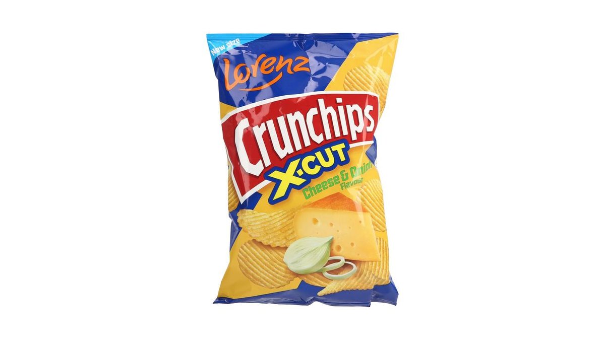 Rebrasti krompirjev čips z okusom sira in čebule Crunchips X-Cut, Lorenz (130 g)