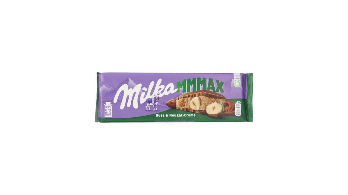 Mlečna čokolada z lešnikovim in mandljevim polnilom, Milka Mmax (300 g)
