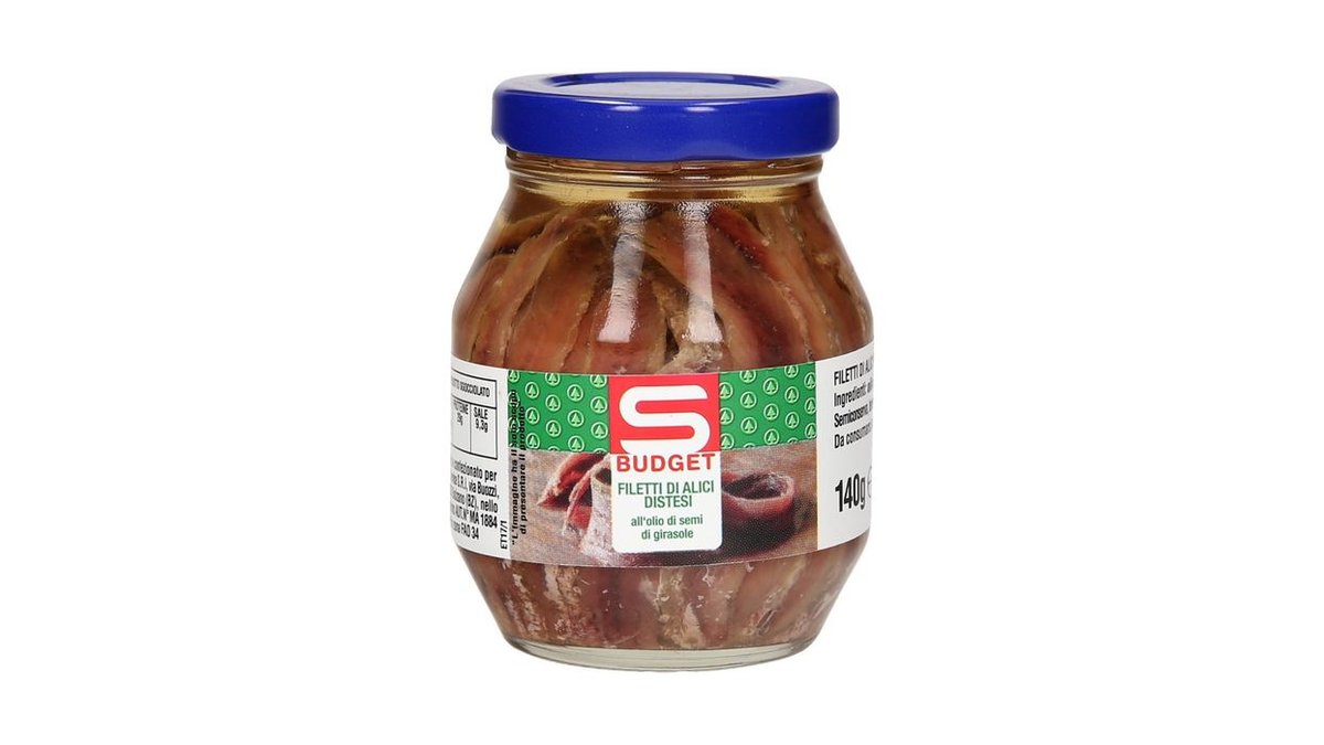 Fileti inčunov v sončničnem olju, S-Budget (140 g)