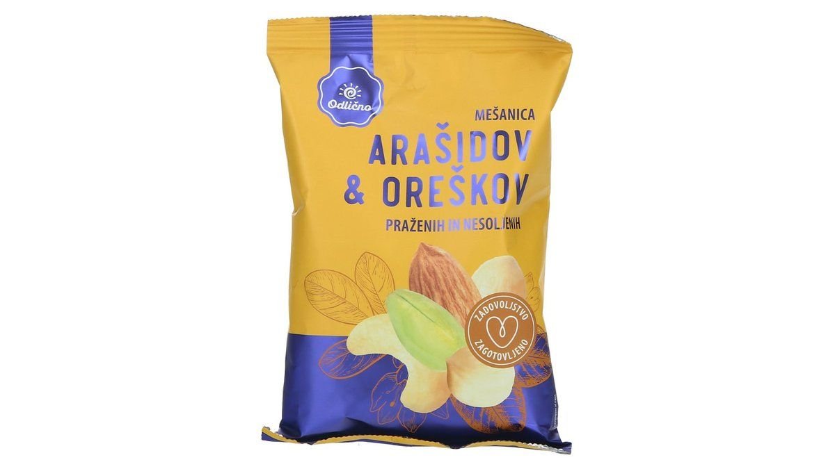 Mešanica arašidov in oreškov, praženih in nesoljenih, Odlično (150 g)