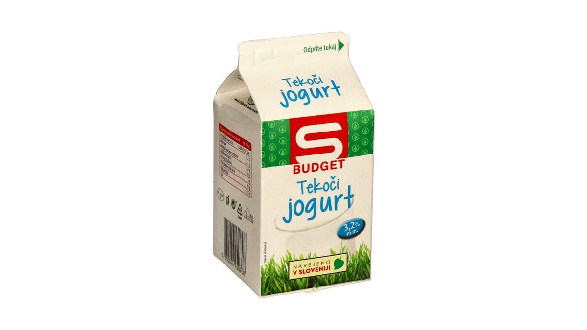 Tekoči navadni jogurt 3.2% M.M., S-Budget (500 g)
