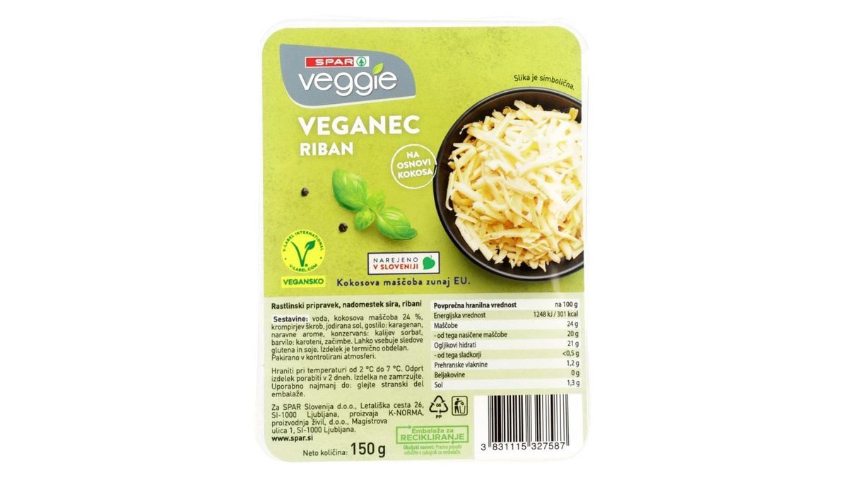 Rastlinski pripravek, nadomestek sira, ribani, SPAR veggie (150 g)