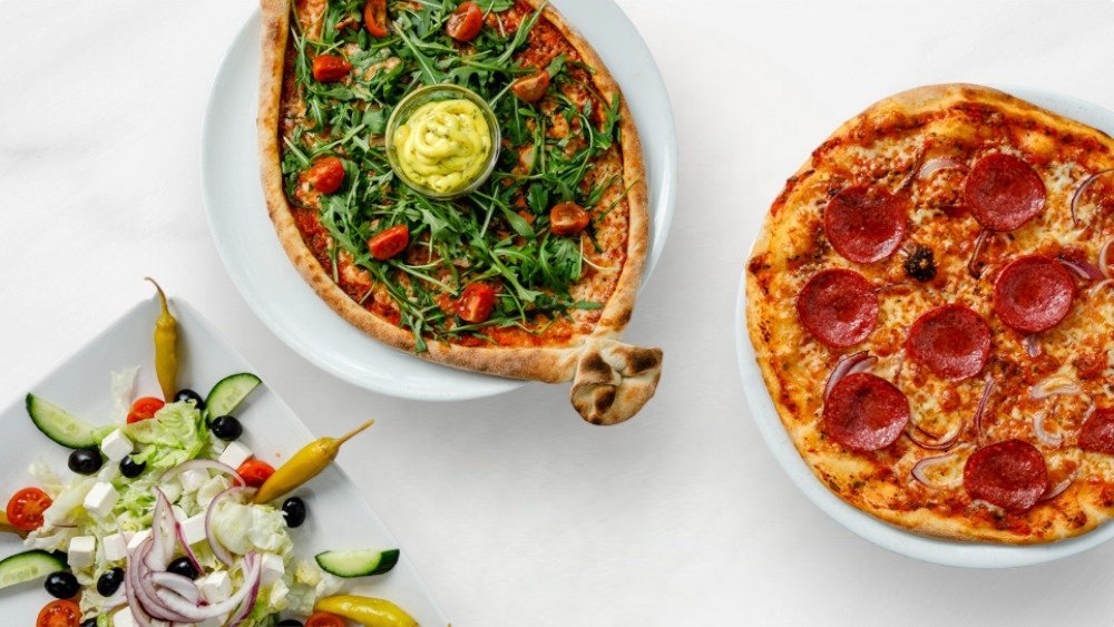 Vitost, sallad, tomat, gurka, lök, pepperoni, oljevinäger, ruccola, oliver och citronsaft.