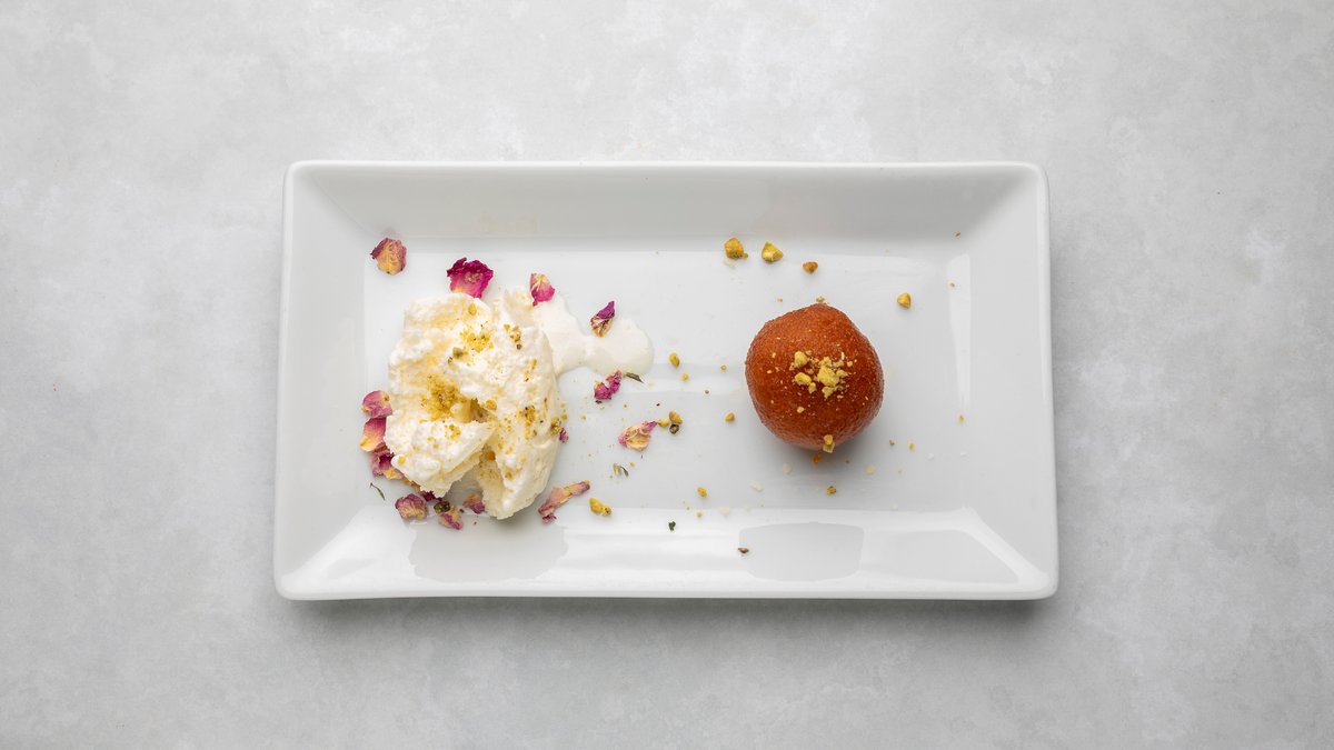 Lammfilé tillagad med ingefära, vitlök, lök, tomat, yoghurt, kryddor och basmatiris.