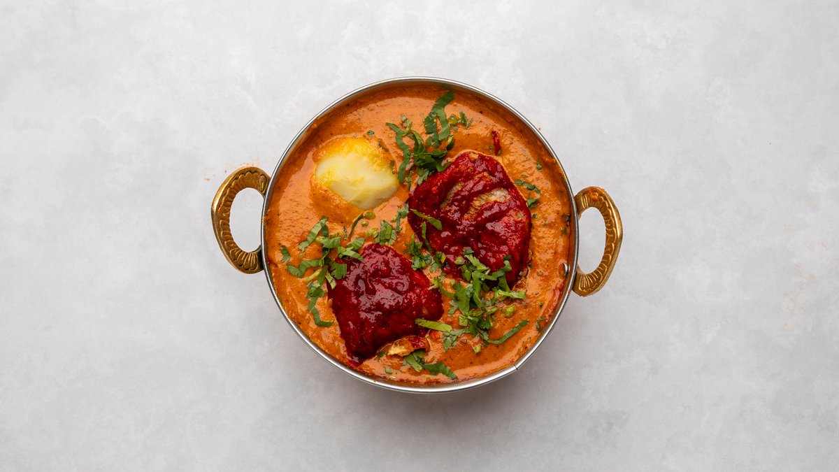 Tikkakryddade kycklingfilé, grillad i ugn och tillagad i en sås av indiska kryddor, kokos mjölk och mint.