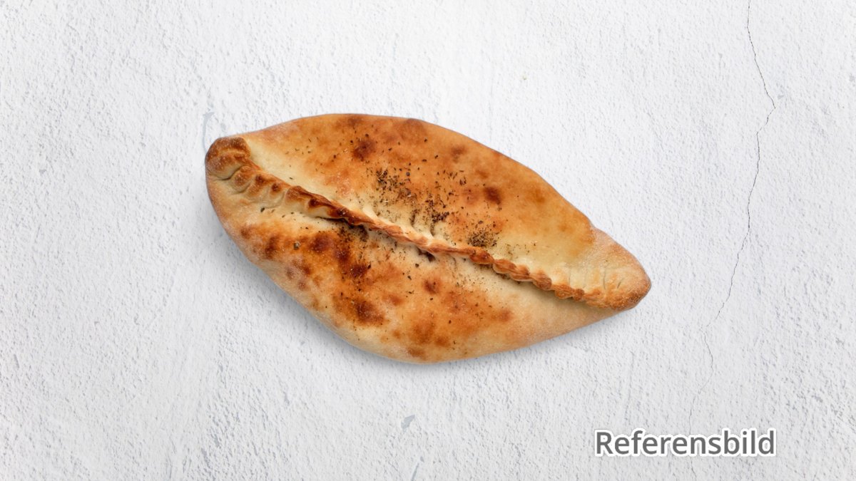 Pizza med inbakad skinka.