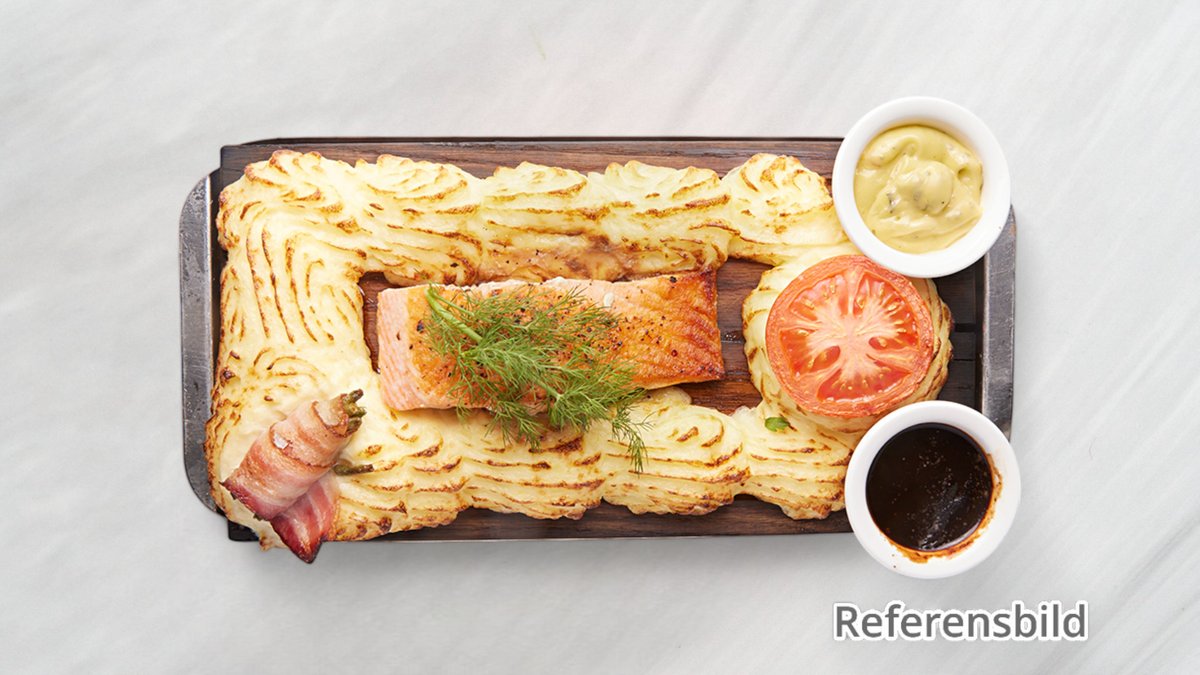 Serveras med ostgratinerad tacoköttfärs, nachochips, isbergssallad, tomater, gurka, lök, salsa, gräddfil och jalapeno.