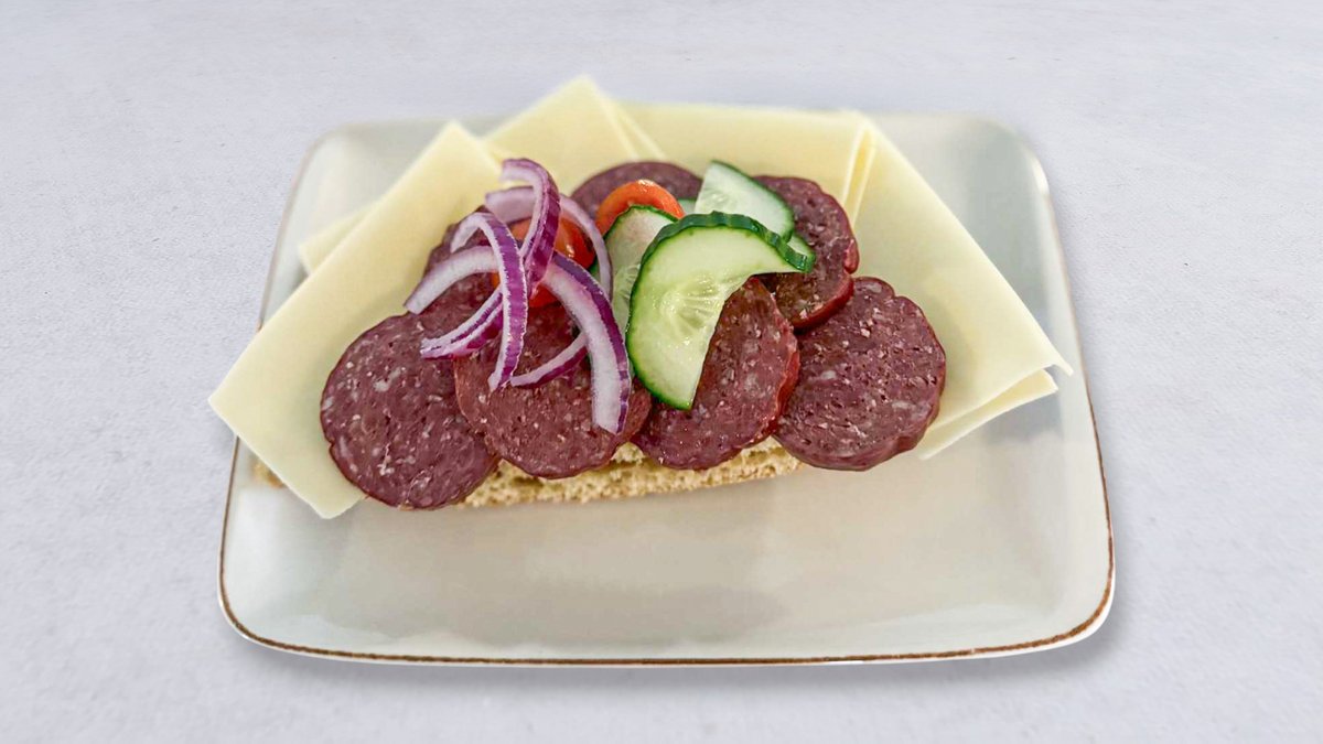 Bresaola, pesto, stracchino, bifftomat och ruccola.