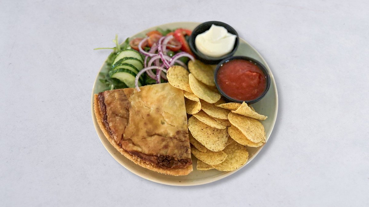 Med nachochips, sidosallad, mild salsa och crème fraîche.