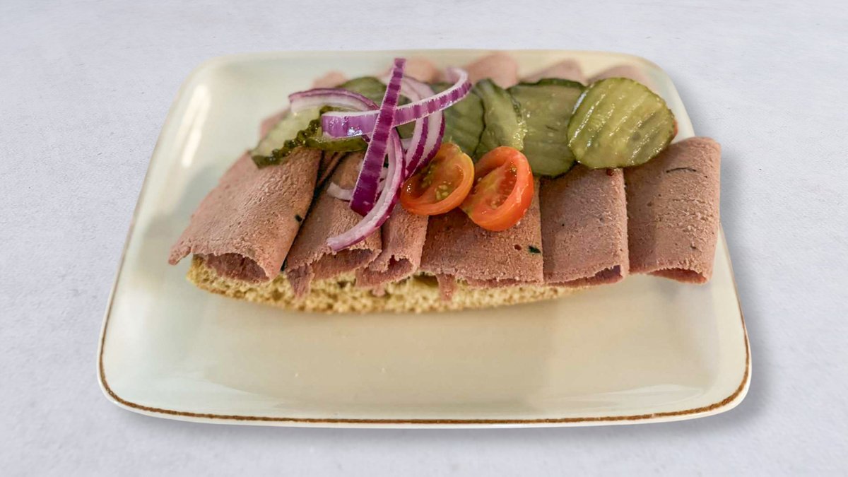 Mortadella, stracciatella, pistagenötter, balsamico och bifftomat.