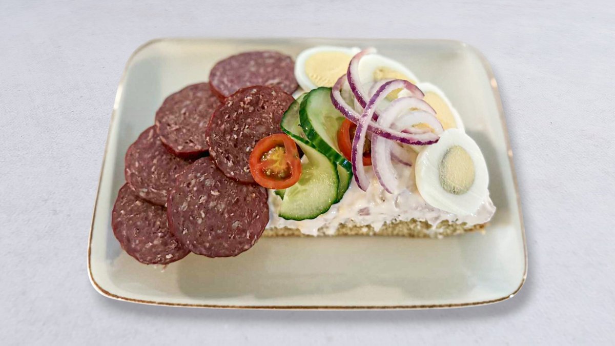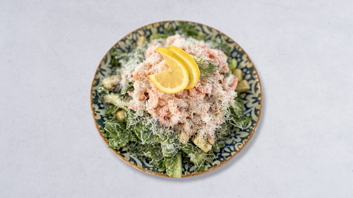 Handskalade räkor, kokt ägg, majonnäs, stenbitsrom, dill och citron.
