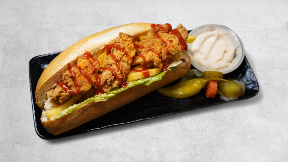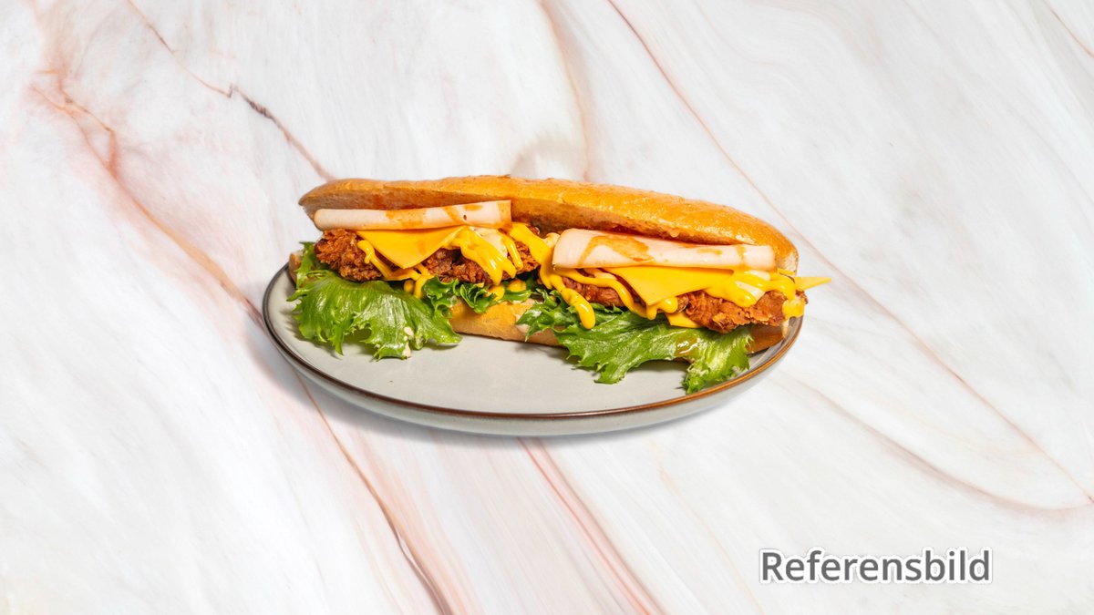 Supreme Sandwich - Frasigt friterad kyckling med frisk sallad, krispiga pickles, krämig coleslaw och vår speciella sås i bröd. En av husets favoriter!