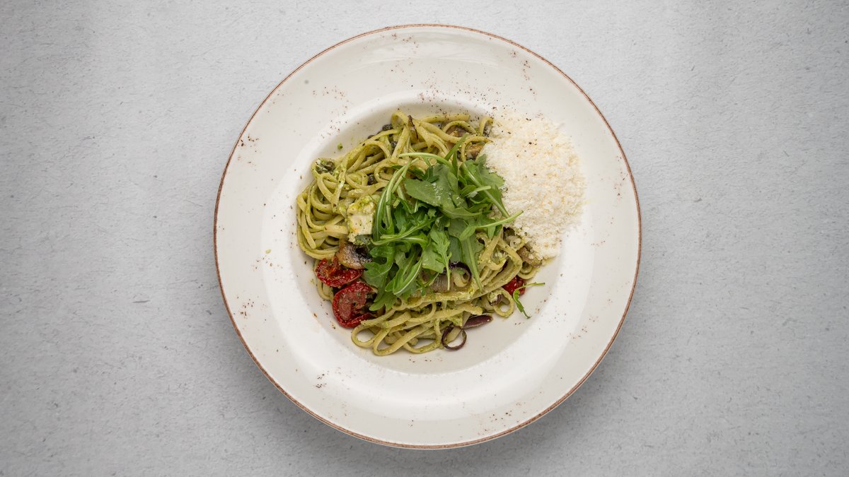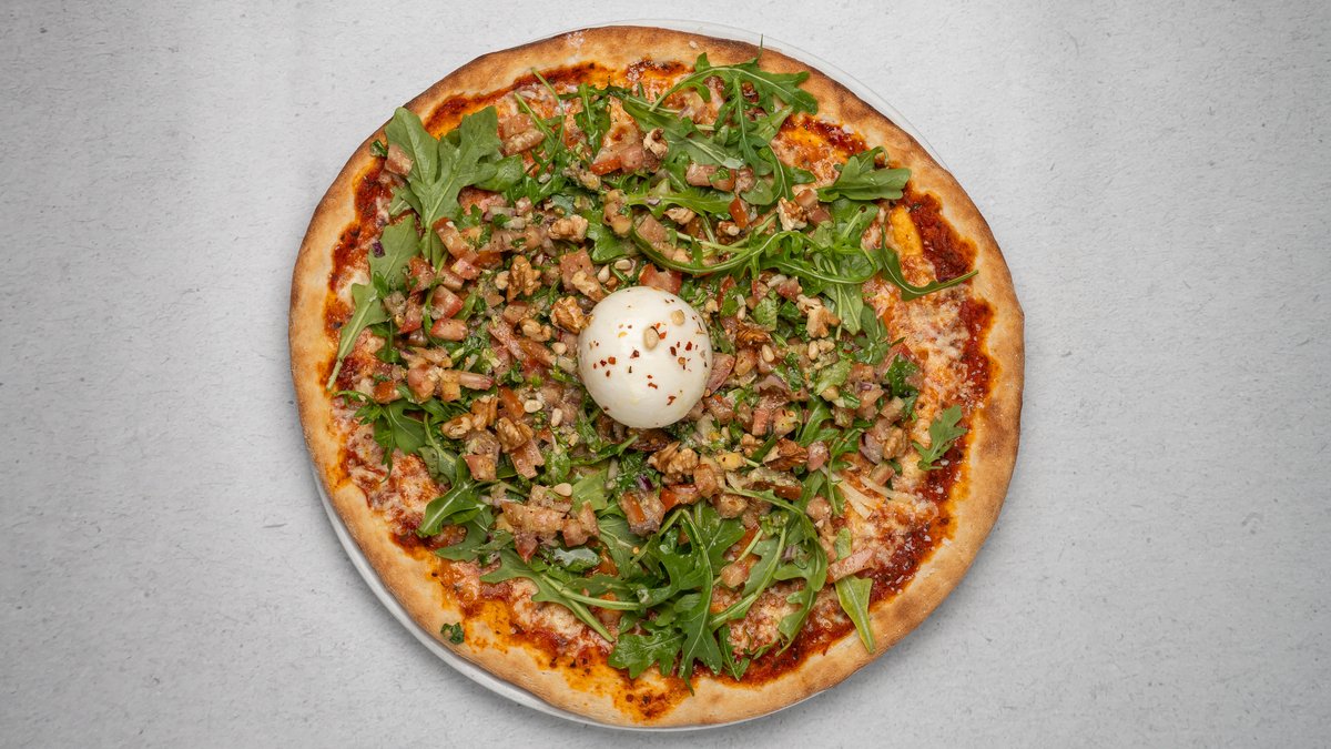 Tryffelsalami, semitorkade tomater, ruccola pinjenötter & mozzarella