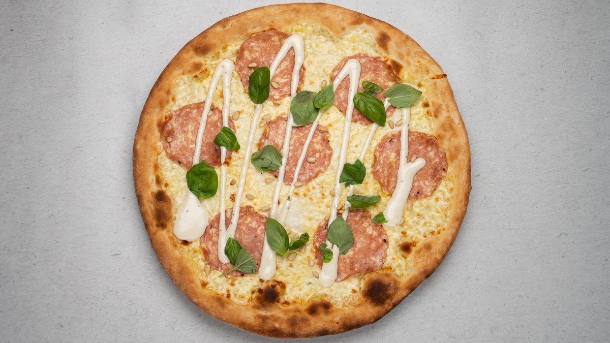 Stark salami, salami nduja, lök, ost, mozzarella och bearnaisesås