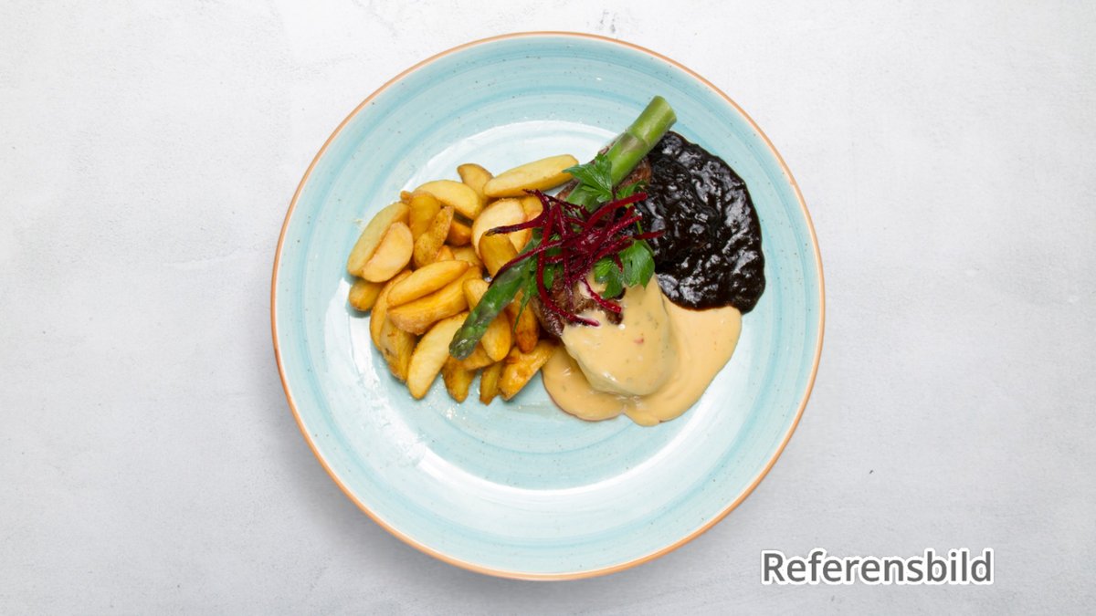 Oxfilé, fläskfilé, korv, bacon, bearnaisesås