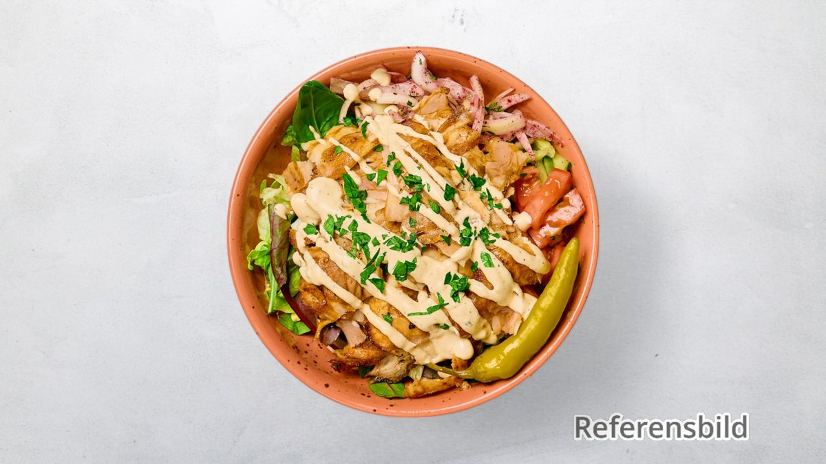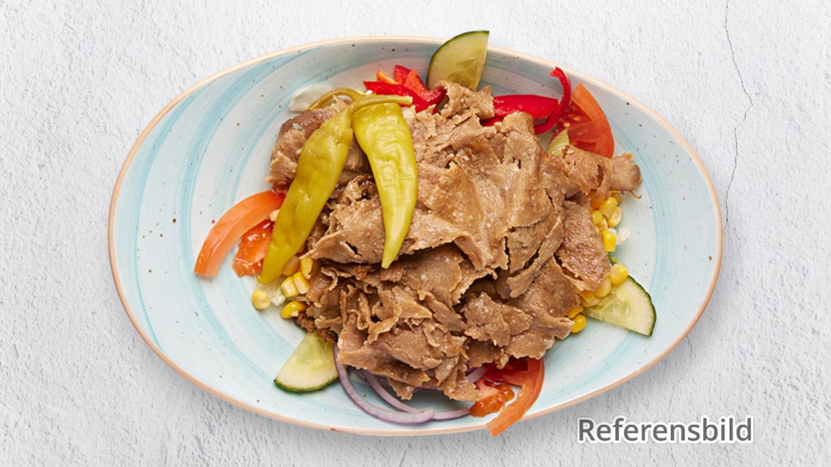 Kycklingkebabkött, färska tomater, lök, feferoni