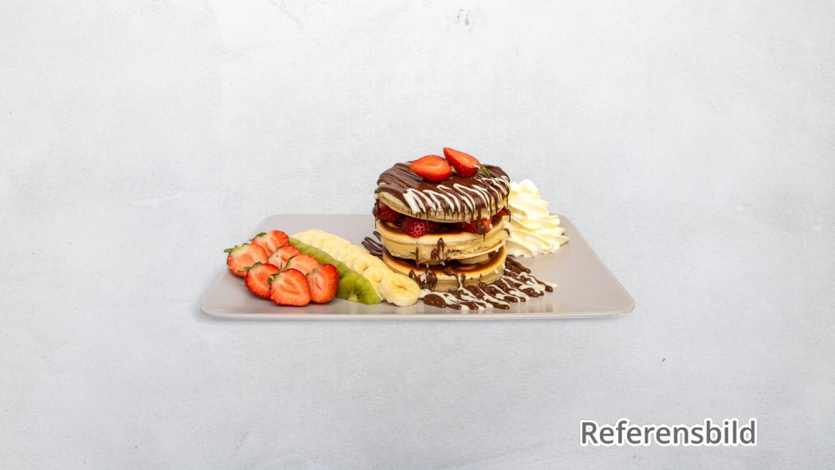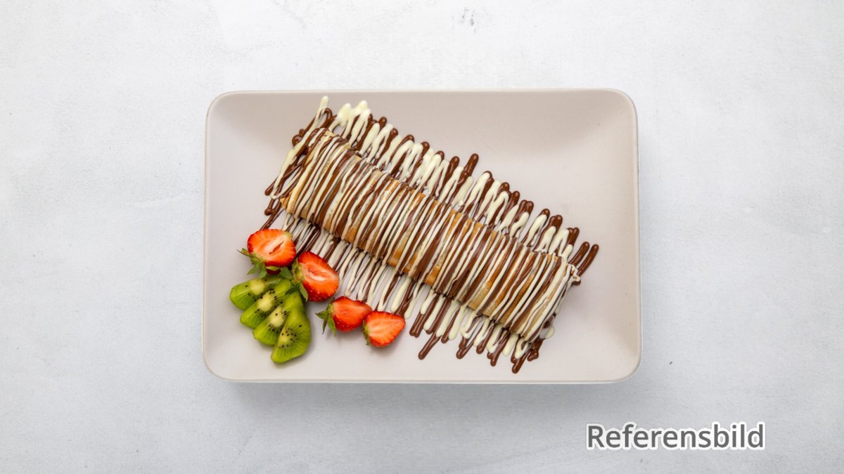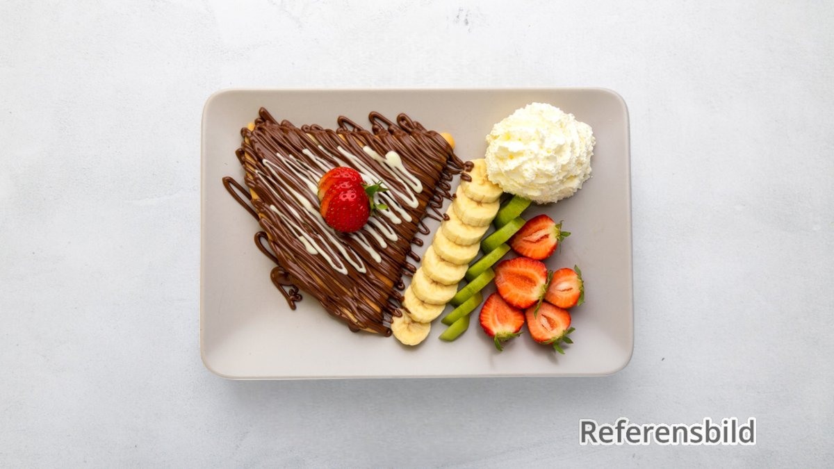 Crepes, 8 st sweety fruity, 1 våffla. Serveras med frukt, choklad och glass
