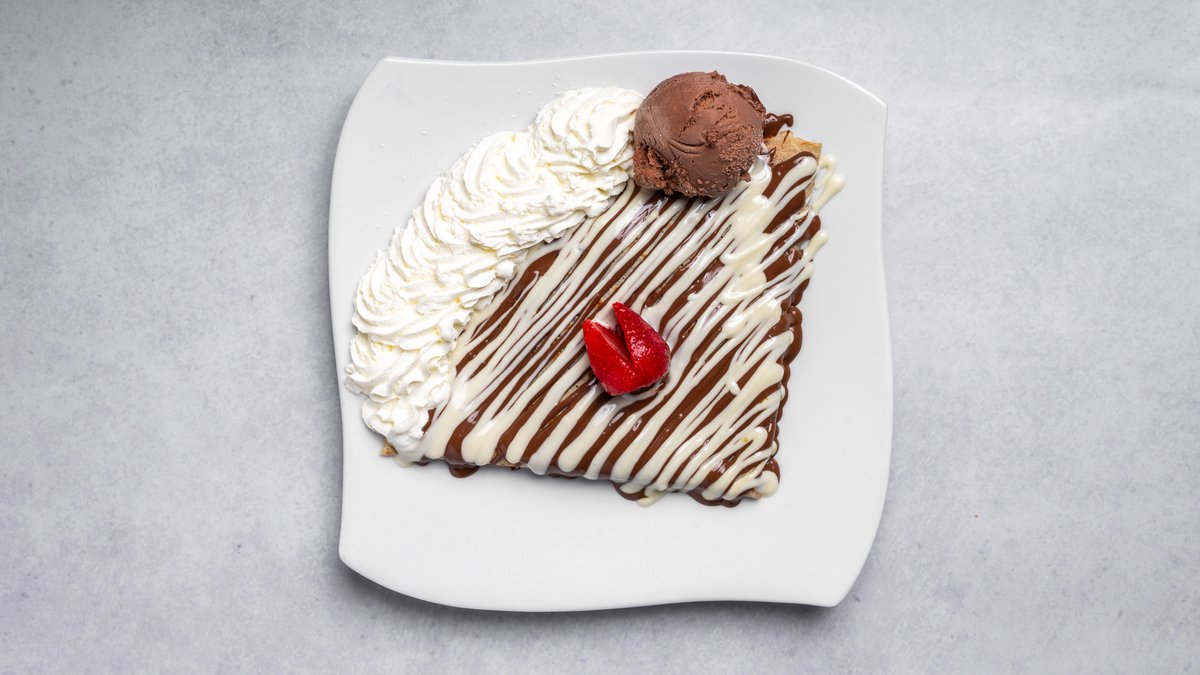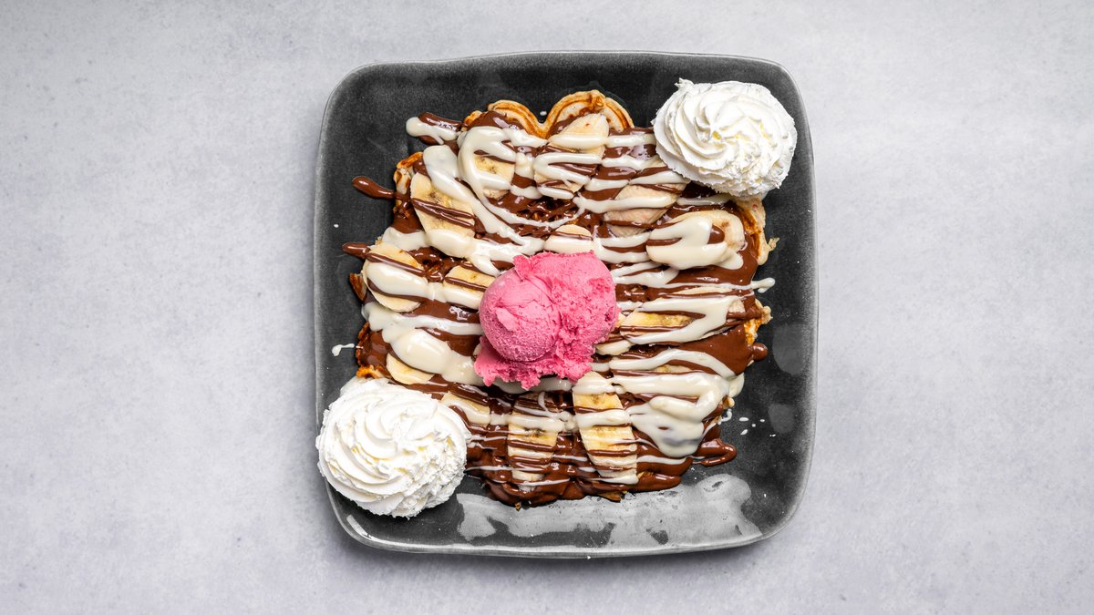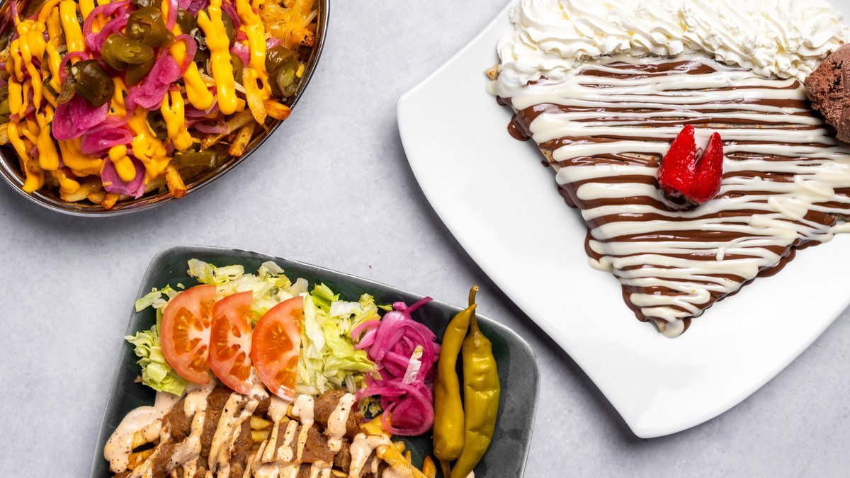 At Café Aladdin you'll find both sweet and salty! From tasty dishes such as Kebab toast and Cheesy fries to sweet Crepes with nutella and strawberries. Order directly to you today!