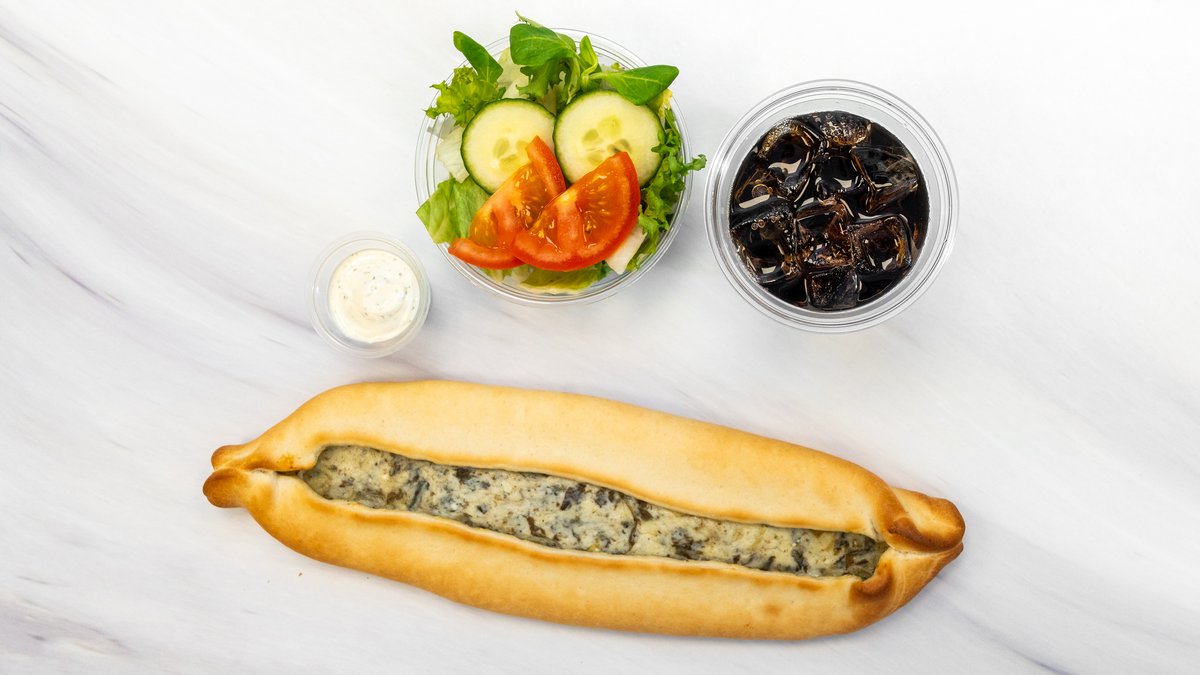 I menyn ingår en valfri dryck, side order och dipp.