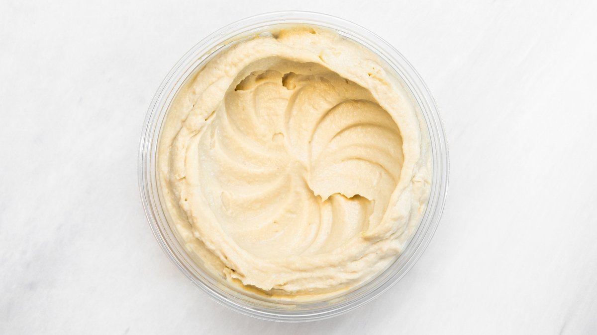 Orientalisk kikärtsröra med sesampasta (tahini) och olivolja. Smaksatt med vitlök och citronjuice.