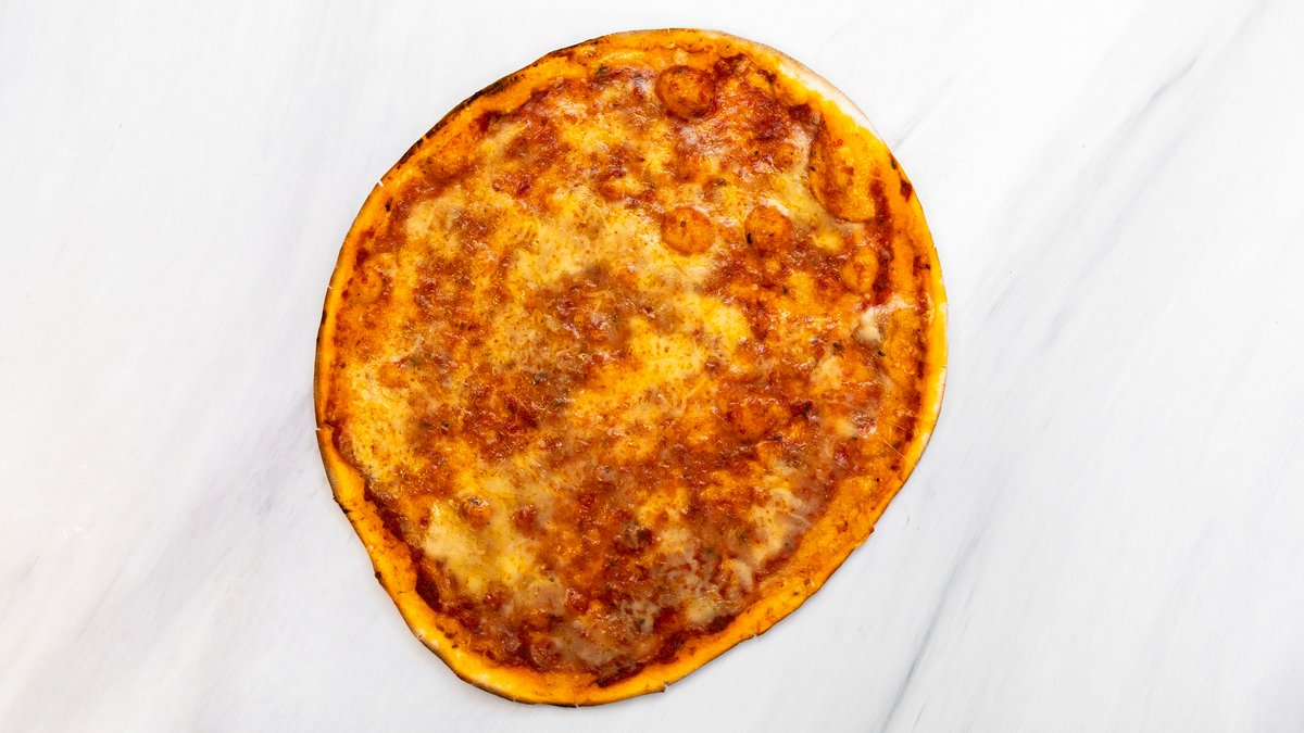 Mhammara & Cheese pizza-en het kombination av zataar, oregano och vår egen kryddiga paprikaröra, toppad med riven ost.